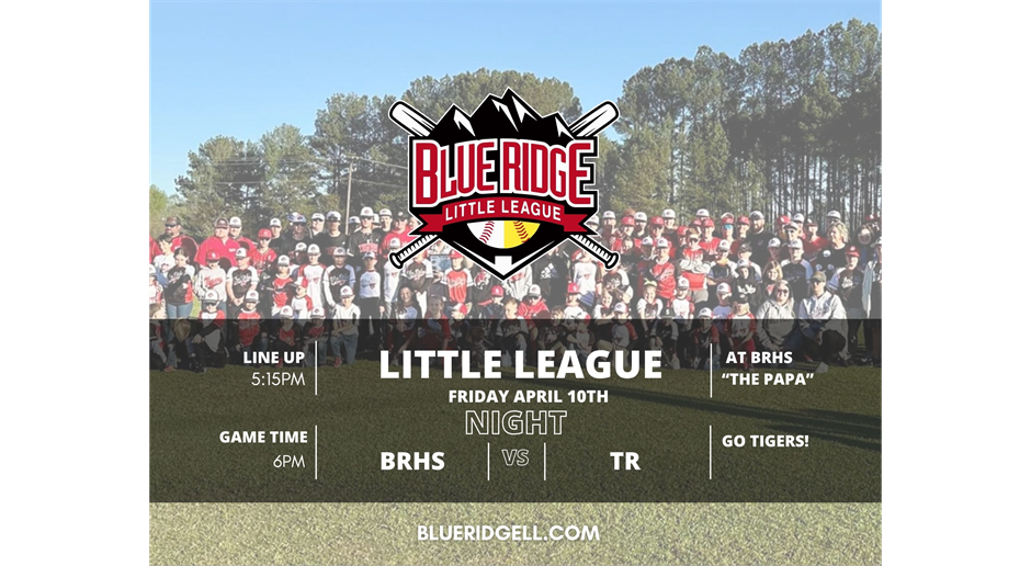 Friday 4/10/26 Little League Night at Blue Ridge High School “The Papa”BR vs TR Rival Game
